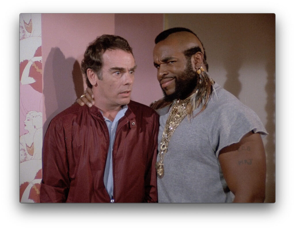 The entire final act was lots of fun–the setting of abandoned amusement park I feel is normally reserved for horror movies, but it made for an interesting place to have the final confrontation. I immediately knew Hannibal would be one of the cowboy statues, but the reveal was still perfect. And B.A. punching the driver of a moving car through the windshield was pretty epic. “Bah, impossible, that would totally tear up B.A.’s hands!” I hear non-believers say, so let’s clear up the confusion here: Mr. T can indeed punch through glass because people were simply tougher in the 80’s.