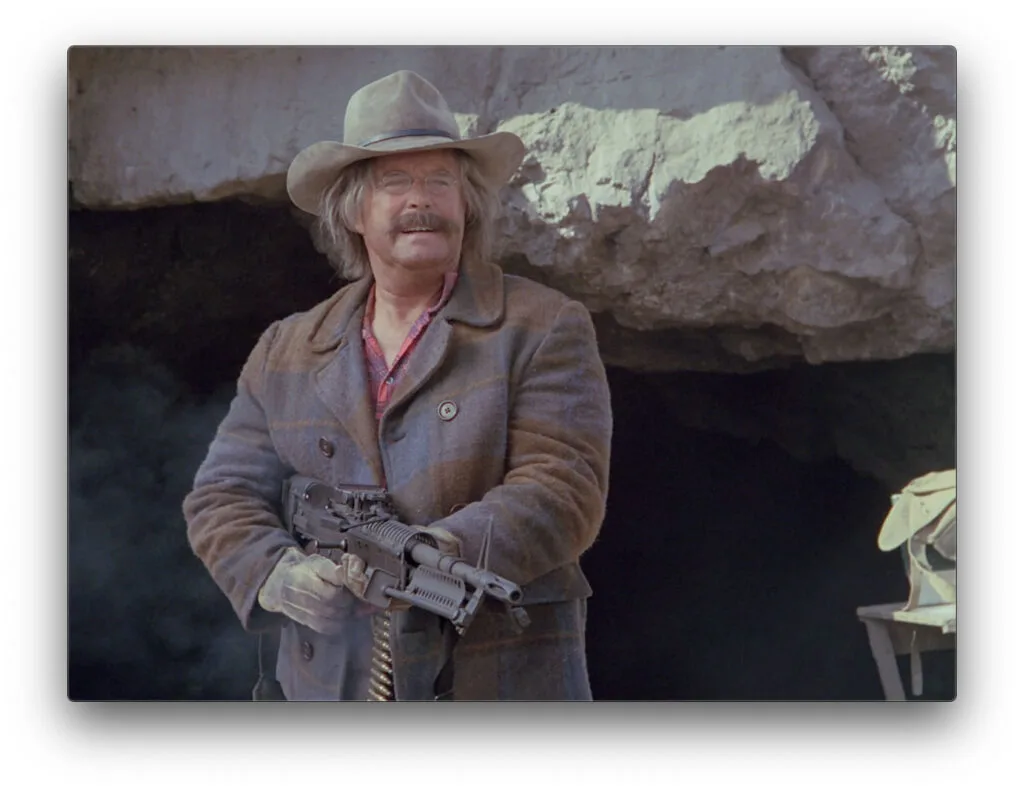 Our heroes, to a montage, build an anti-tank. That is, they pull the classic gag of dismantling a car in order to move it, only there’s a slight variation this time as they simply bury the pieces (and the gold) in place. I have to wonder if dismantling a truck and digging several small holes is easier than digging one, very large hole. But 2 minutes of digging would have made for a boring montage, so I suppose I get it.