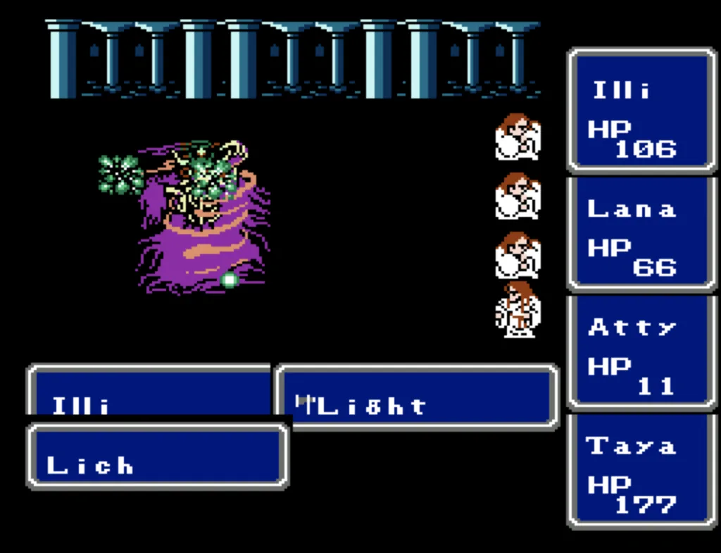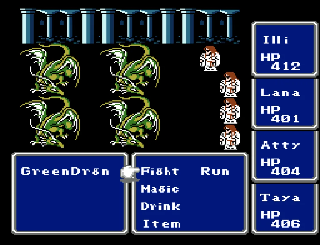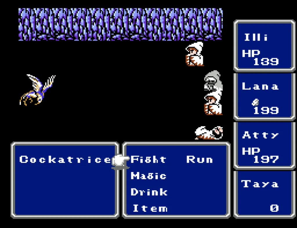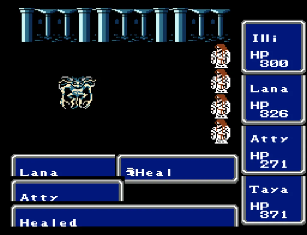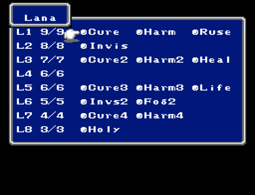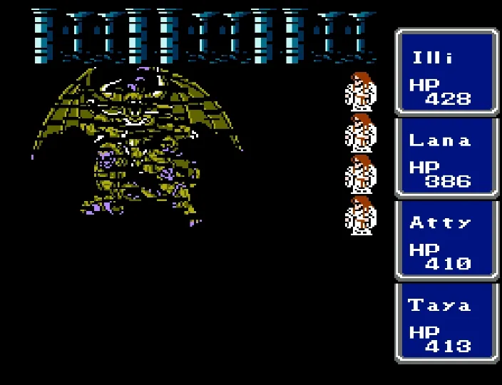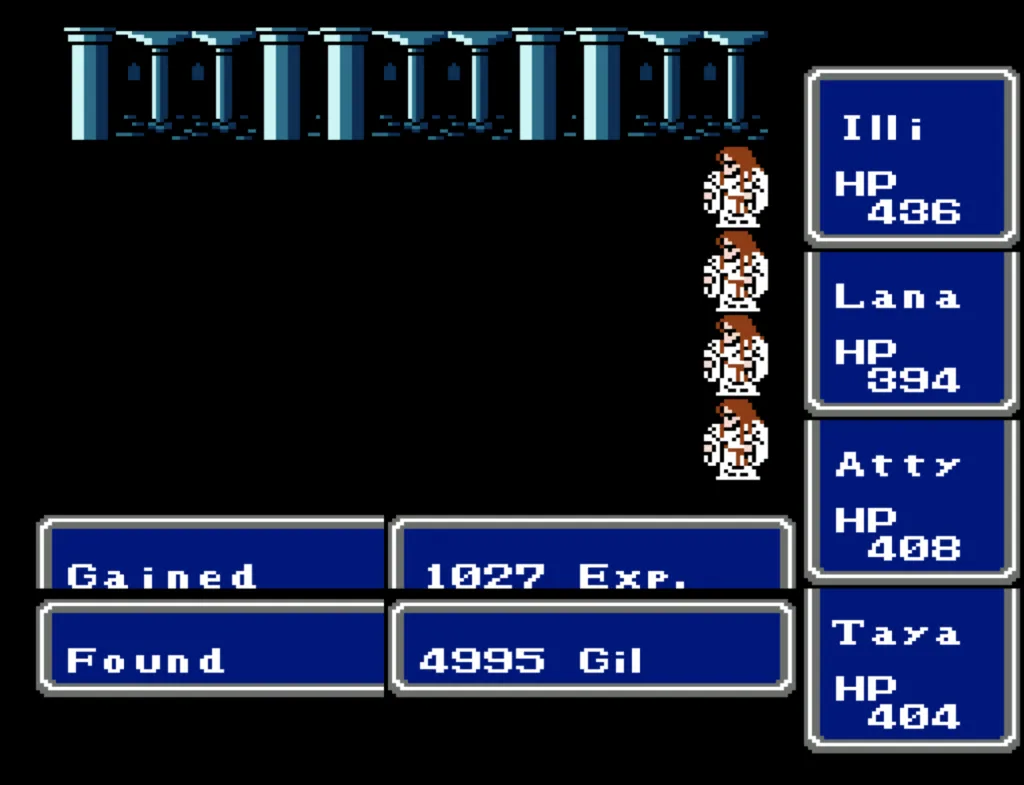 I’ve played through Final Fantasy several times before, but I’d never attempted the ultimate challenge of beating it with four White Mages. And since I needed to beta test a new ROM Hack I’d been working on, this seemed like a good opportunity to accomplish both. Prior to this run, my usual party was Fighter, something (usually another Fighter), White Mage, Black Mage. The first fighter was my Tank and Damage Dealer, the second fighter was his backup, and the Mages did their thing. This is the first time I’ve actually needed to use some real strategy in this game. Having Four White Mages meant I had to decide their roles for them. The first thing I did was make my 3rd slot my primary Damage Dealer. There’s a big advantage to putting my main offense in a lower slot, as the 3rd and 4th slots take a lot less hits than the 1st and 2nd. It also made sense to me to break up the Tank and Damage roles. I’m actually not sure why I didn’t do this earlier; it’s a sound strategy regardless of your party composition.