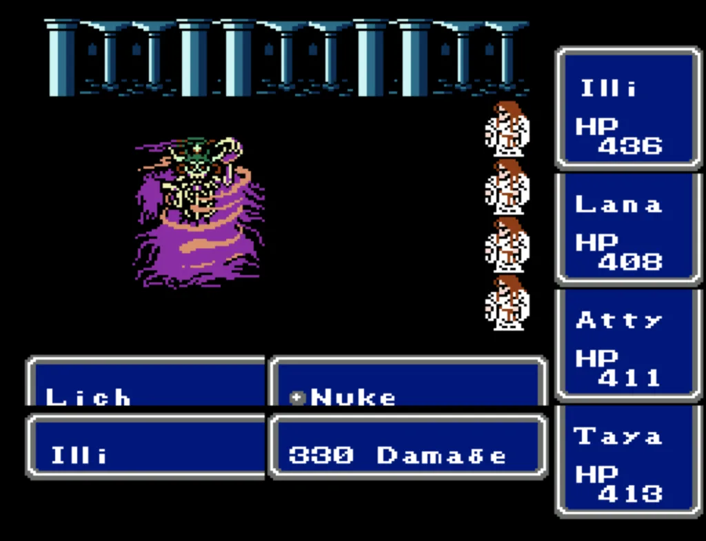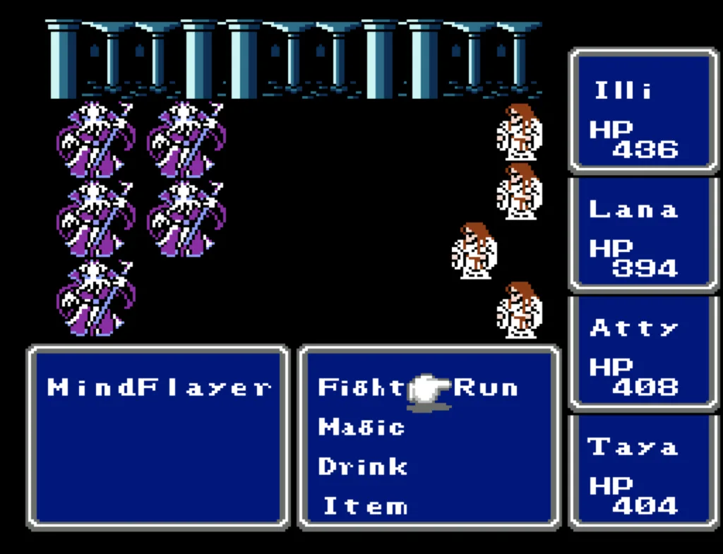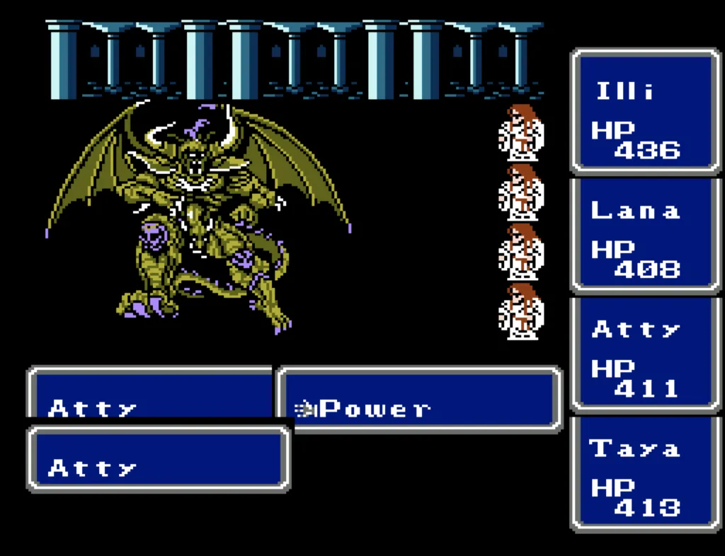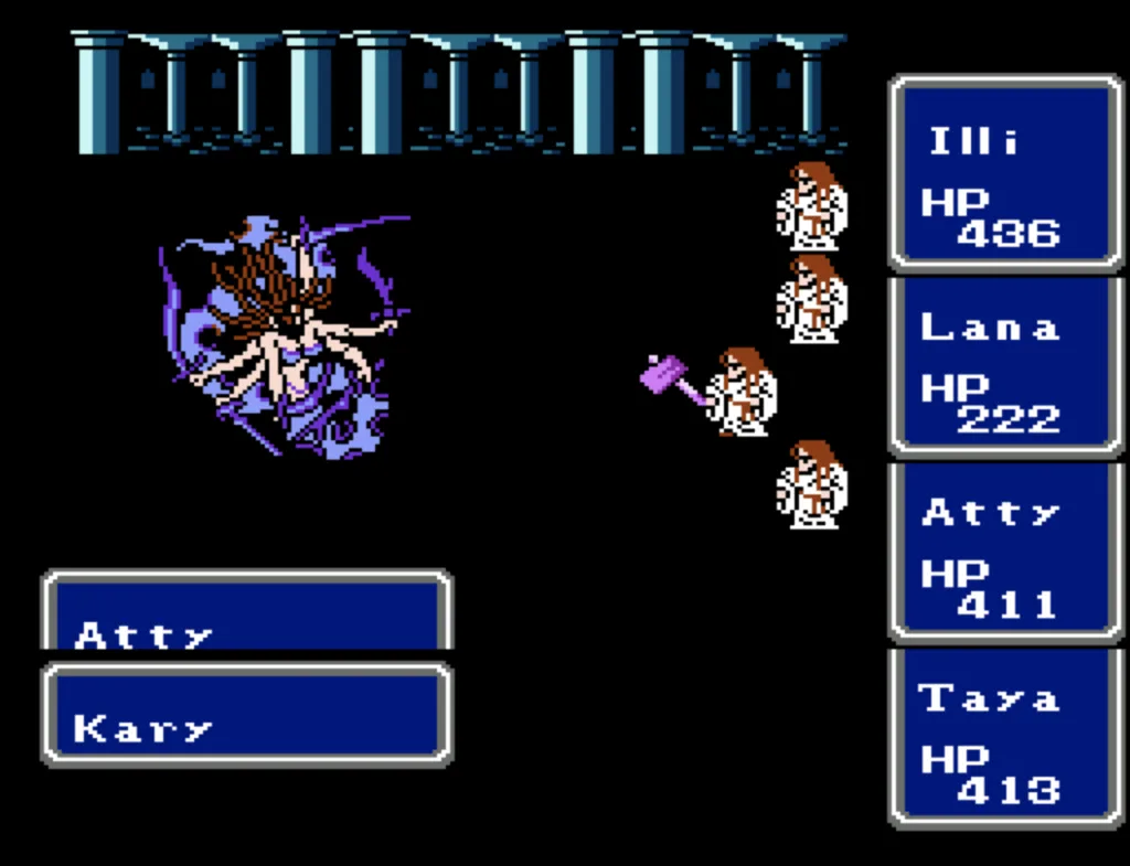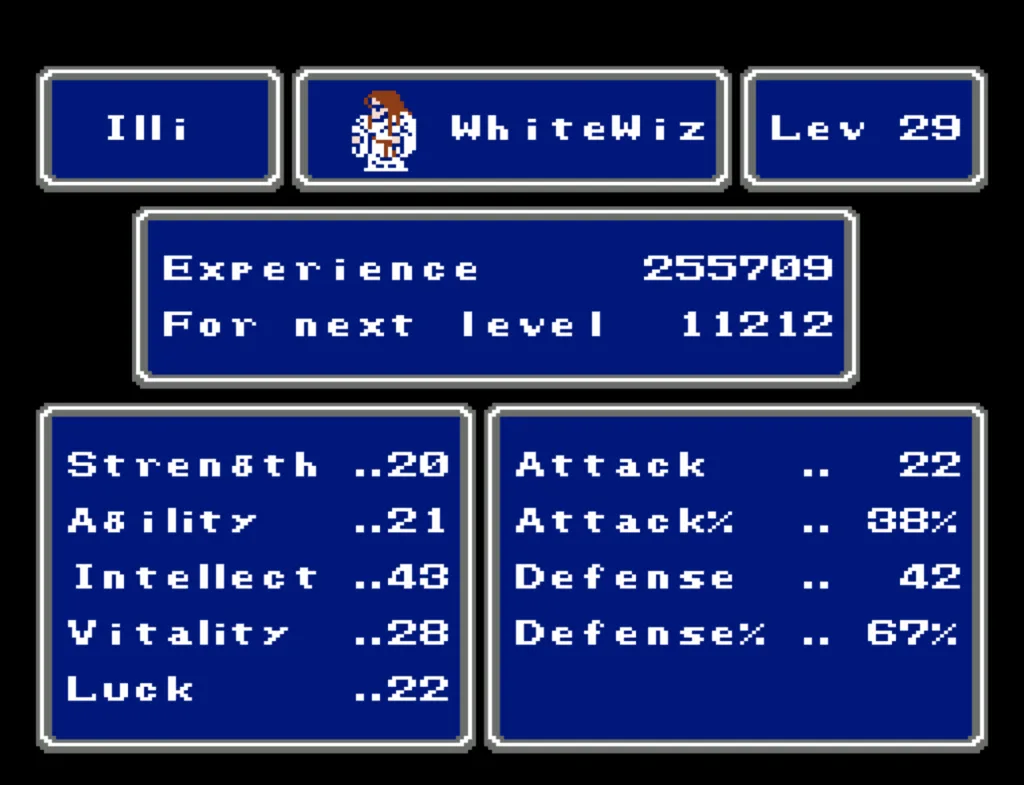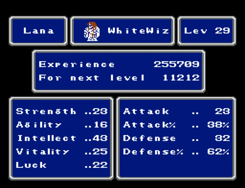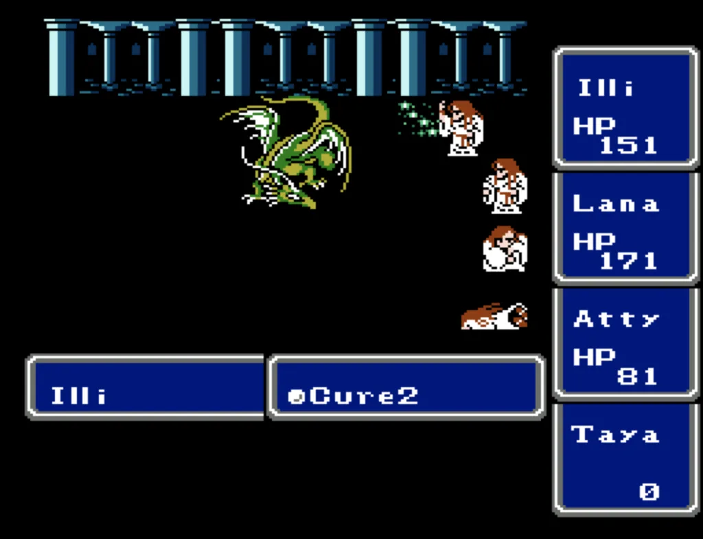 I’ve played through Final Fantasy several times before, but I’d never attempted the ultimate challenge of beating it with four White Mages. And since I needed to beta test a new ROM Hack I’d been working on, this seemed like a good opportunity to accomplish both. Prior to this run, my usual party was Fighter, something (usually another Fighter), White Mage, Black Mage. The first fighter was my Tank and Damage Dealer, the second fighter was his backup, and the Mages did their thing. This is the first time I’ve actually needed to use some real strategy in this game. Having Four White Mages meant I had to decide their roles for them. The first thing I did was make my 3rd slot my primary Damage Dealer. There’s a big advantage to putting my main offense in a lower slot, as the 3rd and 4th slots take a lot less hits than the 1st and 2nd. It also made sense to me to break up the Tank and Damage roles. I’m actually not sure why I didn’t do this earlier; it’s a sound strategy regardless of your party composition.