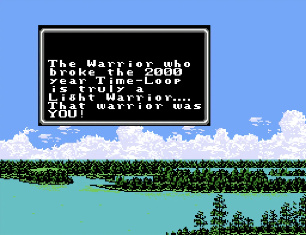 That hit didn’t finish him, but he certainly never recovered from that blow and it was only another couple rounds before Chaos had fallen to my Four Level 29 White Mages. I couldn’t be prouder. The story of the Light Warriors passes into Legend, as do I for having accepted and defeated the Grand-daddy of all Final Fantasy challenges.