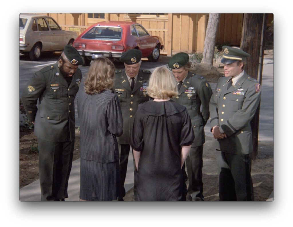 This is another Vietnam-heavy episode and the client (not technically a client) is the recently widowed wife of an old friend the team served with. There’s a lot of flashback footage, and again you have a tremendous sense of respect from our characters (and by extension, the writers) for those who served in the war. There was one shot of a field of downed choppers, narrated by an unusually somber Murdock, that really communicated the cost of this war. On closer look, they may have just been parked there, but the thoughts and emotions evoked were just as real.
