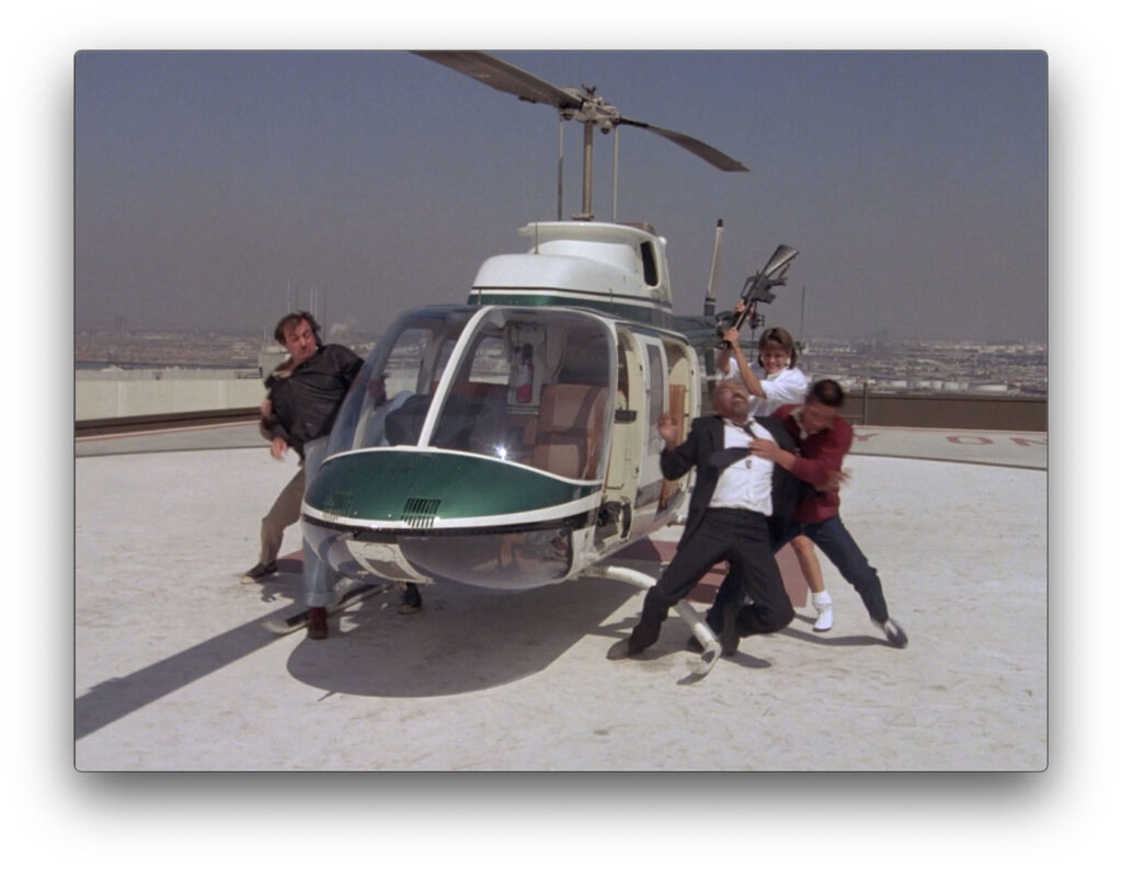 The plot is your standard bust-the-drug-lord affair, with a little Vietnam lore thrown in for good measure. Murdock’s schtick in this episode wasn’t up to his usual standards, but did I love Hannibal’s indulging of it. This time our guest star was a Vietnamese camp guard who secretly brought food to mal-treated POWs. After taking the bad guys’ bread delivery truck, the team quickly discovers $10 Million worth of heroine stuffed inside the loaves. The bad guys, furious at this, actually manage to get one up on our heroes through some creative hacking–after connecting to some kind of voice-automated telephone routing system (the show called it an “operator”), the bad guy traces the location of a call our heroes made. The ensuing helicopter assault tears the place up, but to our great relief everyone emerges ok ™.