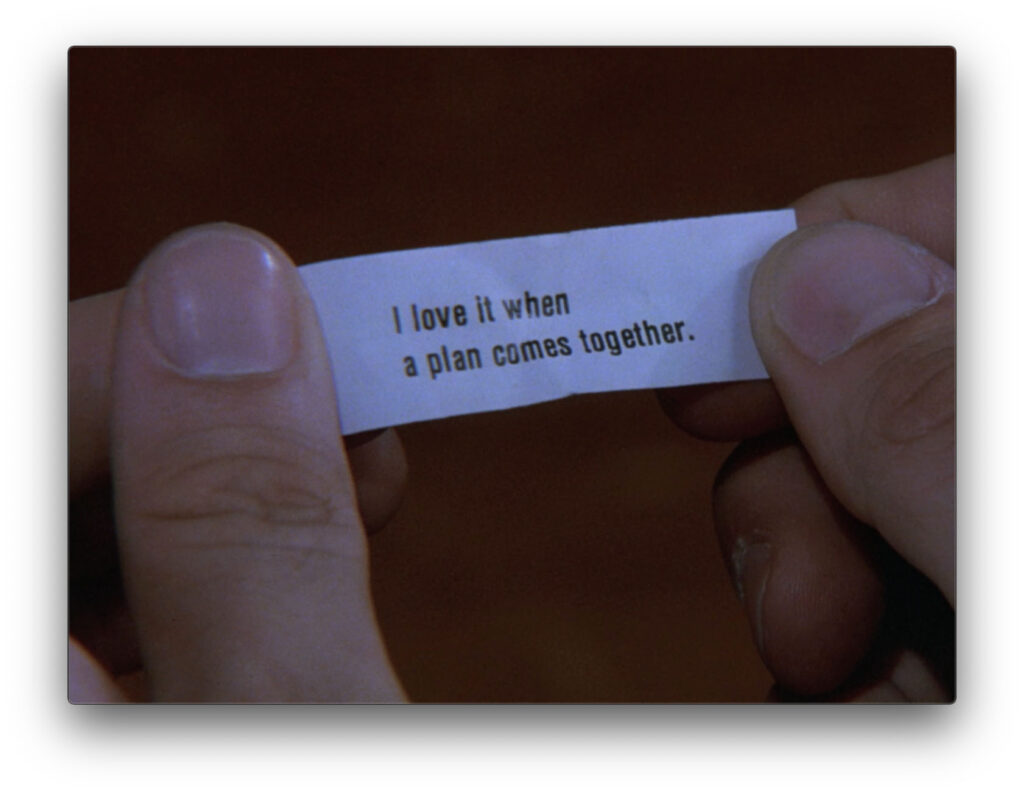 After the dust settles, and with Face’s lavish abode now toast, the team finds themselves loafing around B.A.’s crumby flat. Our guest star whips up a special batch of fortune cookies as a thank you, and this episode is a wrap. I enjoyed the Recipe for Heavy Bread. It’s a lot of fun–any way you slice it.