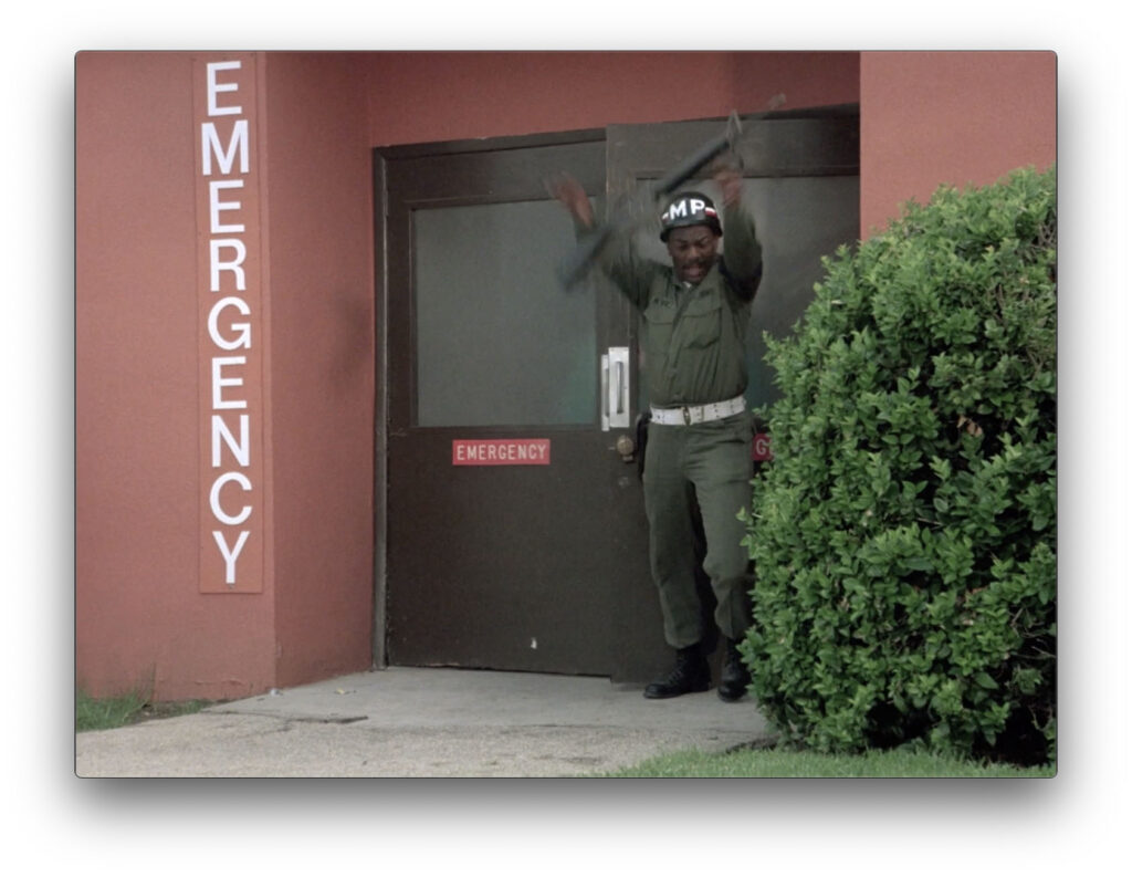 B.A.’s pink tiger stripe shirt is hard to miss, but what stood out to me was how quickly he changed into it. Seriously–they jump in the van after escaping the hospital and he’s in camo. Next moment, he’s in the van wearing a completely different outfit.