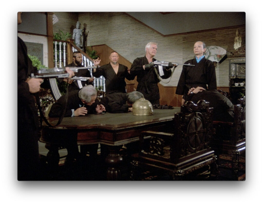 The ninjas are defeated, and the mysterious drug lord is revealed to be carrying a micro-film list of lots of other bad guys. Our heroes deliver him to the cops as an early Christmas present.