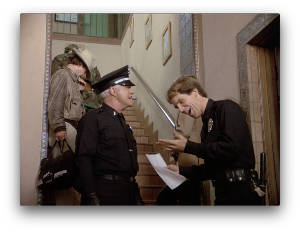 The final battle starts as another shoot out in the streets of LA (which I have to remind myself is perfectly normal–which is why no one seems to notice it) and then moves to a warehouse. Full of Chinese fireworks (ohhhhh goody!!) And this is where things disappoint. Yes, plenty of fireworks go off, bad guys are dazzled, stuff blows up… but I was really hoping for the whole building to go off. I mean a warehouse full of fireworks is begging to blow up all at once. Alas, the 80’s budget I suppose.