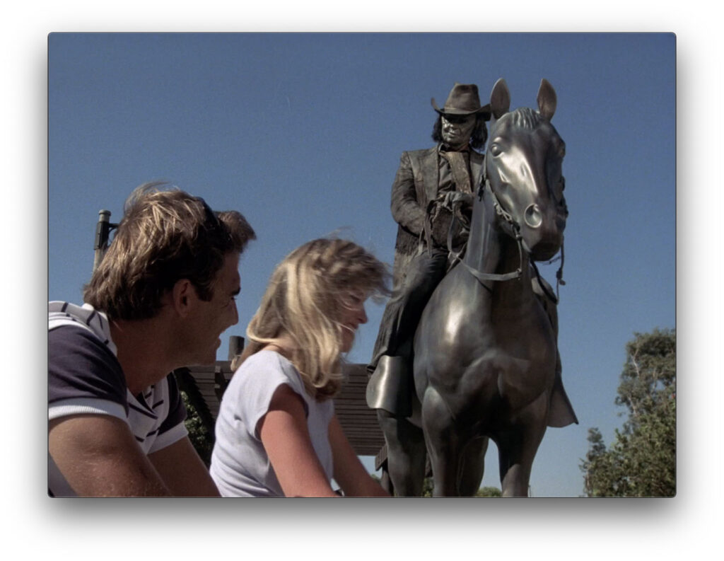 This episode opens with what’s probably my all-time favorite Hannibal disguise. He goes all in as a bronze statue, a horse-mounted rider. So some bad guys have kidnapped a girl, daughter of someone who’s about to testify against a mobster. There’s a minor twist in that it’s actually and enemy of the guy being testified against, so he actually wants the guy to testify. Anyway, enter our heroes.