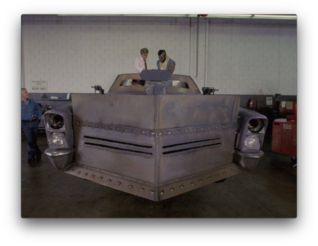 The bad guys are pilfering parts from an assembly plant and beating up anyone who noses in on the operation. During the set-up phase of the plan, Face scams up a terrific old Cadillac which is initially used as little more than an advertisement for their auto parts store. My first thought when I saw this thing was “now that’s a car begging to be made into a tank.” Actually, my first thought was “Bwahahahahahahahahaha!!!!!” …but my second thought was totally that thing I said earlier.