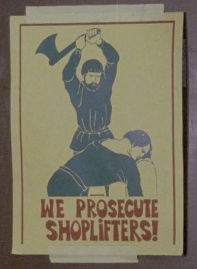 This ep had several great moments–we’re pretty sure our heroes have bugged the bad guy lunch room, but they sweep it and find nothing. It turns out Murdock himself was in the soda machine, ready with a handful of sodas to drop them through the slot on demand. He even made $0.50 out of it. Back at the shop, you can spot lots of fun things on the walls if you look around. A couple of my favorites are below.