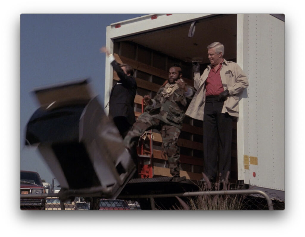 Round 7: Even Hannibal’s trusty M-60 “Baby” makes an appearance so I’m calling it another round. Our heroes make their usual exit, leaving the bad guys in the hands of the clients. It all makes the 11 o’clock news (11 o’clock news is 80’s for Twitter).