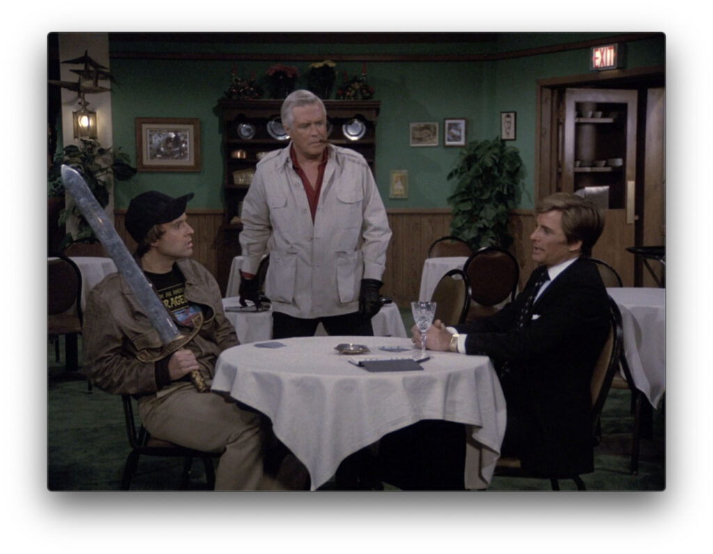 Hannibal borrows his funds, and opens up a bar and restaurant, The Naked Lady. He then borrows the set from one of his latest B-movies, assembles it in a warehouse, and waits for the fun to start.