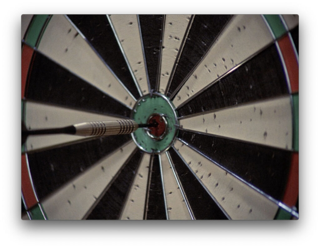 There’s no better way to stick it to a bad guy than to nail a bullseye on his own dart board. I suppose embedding a bug in the dart, spying on them, and then foiling all their plans is a close second.
