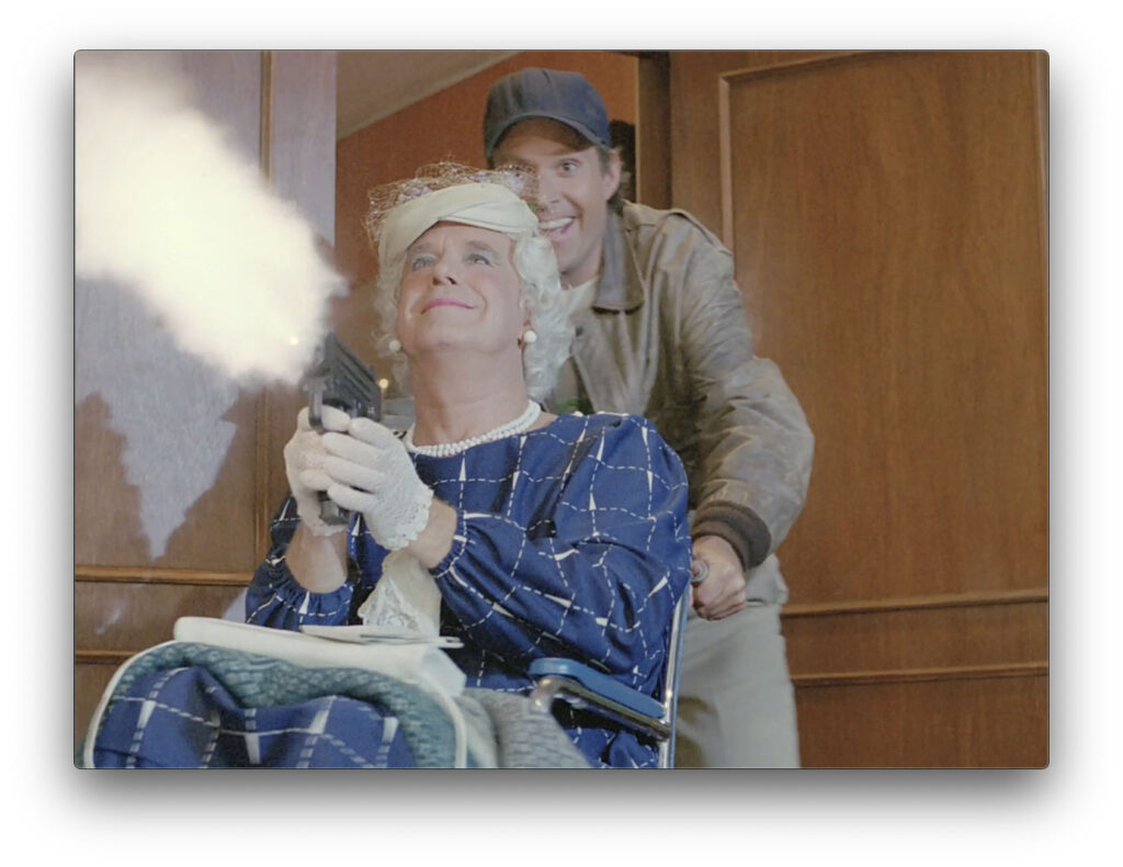 Per the standard by-the-book episode format, we follow the bad guys up the ladder. Now the thing about this show, is that’s it’s predictable–and I mean that in the absolute best way. The way that tells us, for instance, if Hannibal is in disguise as a wheelchair-bound grandma and there are bad guys trashing the place around him, that soon enough, granny is going to whip out an automatic weapon and start spraying bullets like a hailstorm. I looked forward to this moment with great anticipation and it didn’t disappoint–we even got a bonus upgrade from the usual guns in the form of an Uzi (a weapon usually reserved for unscrupulous bad guys, not our tasteful heroes).