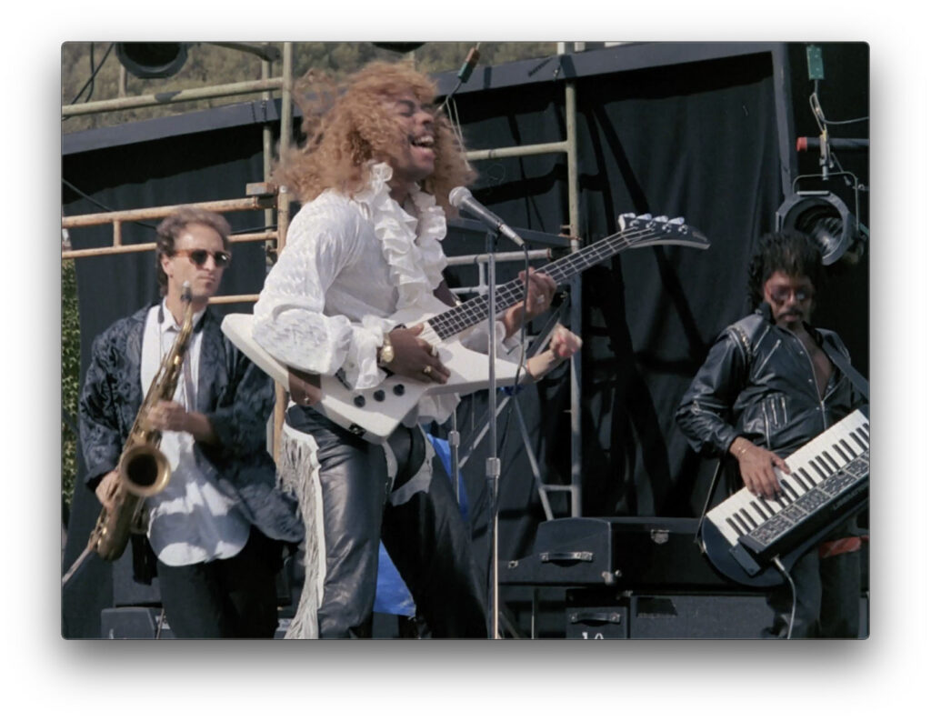 Some stuff happens–it’s not important how, really–and our heroes end up locked in an cement room with no windows and some surprisingly attentive guards outside the steel door. Nah, I’m just kiddin’, it’s a well-appointed machine shop. Meanwhile, Rick James performs this super-freaky song where he apparently samples M.C. Hammer’s “Can’t Touch This,” and Isaac Hayes follows up with a cover of James Taylor’s Steamroller. The music makes for some rather unique breaking-out-of-the-well-appointed-machine-shop-montage music and even the bad guys get into. I appreciate bad guys who aren’t afraid to groove to some hip tunes before murdering anyone and everyone privy to their nefarious plans.