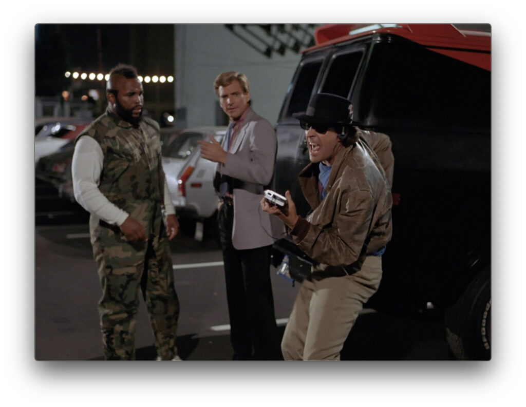 To the plot: Rick James’ good friend C.J. Mac is just about to finish his prison term but is in some kind of trouble. Making their first appearance in a very long time, let’s have a round of applause for famous big-three bad guys Crooked Cops! Our heroes show up just in time to whisk C.J. to safety. Face reaches out to C.J.’s lawyer (guest stars are like a sort of Shrodinger’s cat: they exist as the simultaneous possiblities of being male or female until Face approaches them–at which point they become an attractive, late 20’s/30-something female), who’s both armed and immediately suspicious of him. Which is pretty great–the best Face scams are the often the ones where the mark doesn’t buy it for a moment. For a while, I even thought she may actually be in on it with the bad guys, but alas, this is the 80’s and TV had not yet invented such plot twists.