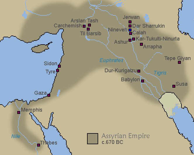 - c. 675 - Assyria is at its peak when Esarhaddon captures Memphis (Northern Egypt). He also has Babylon rebuilt.