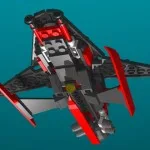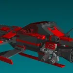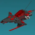 This model is a remake of my X-89 Raven which was probably my first real MOC, built in 1988 (5th grade). The idea was to preserve the overall design but modernize the style and technique. The the wing shape, skid-style landing gear, 1×1 cones in the nose, the large engine in the tail, and the smaller thrusters behind the cockpit all made it into this new version of the ship. The large cannon on the roof had to go to allow for the canopy to open (one of the main flaws of the original design was that you had to take the model apart to get the pilot in and out). As this new design felt like a racer and not a fighter, the cannon really lost its purpose anyway.