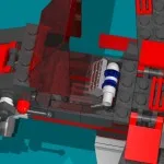 The engine mounting went through several complex variations before I finally settled on the 20 year old L bracket. Another tough spot was the mounting for the rear skid which I also ended up doing in a rather simple configuration. I’m not so happy with it, but the engine is interesting enough to distract from it, I think. The SNOT work between the nose and cabin (the heart of which is well concealed under the nose) was very difficult untill I dumped the use of a certain special piece which I intend to use in another model. Finally, the work behind the seat and above the engine mounting was difficult due to all the different things I wanted in there. The seat back, thrusters, flag, and the podracer fender all had to be mounted in one little spot, and the whole thing had to be sturdy enough to not fall apart.